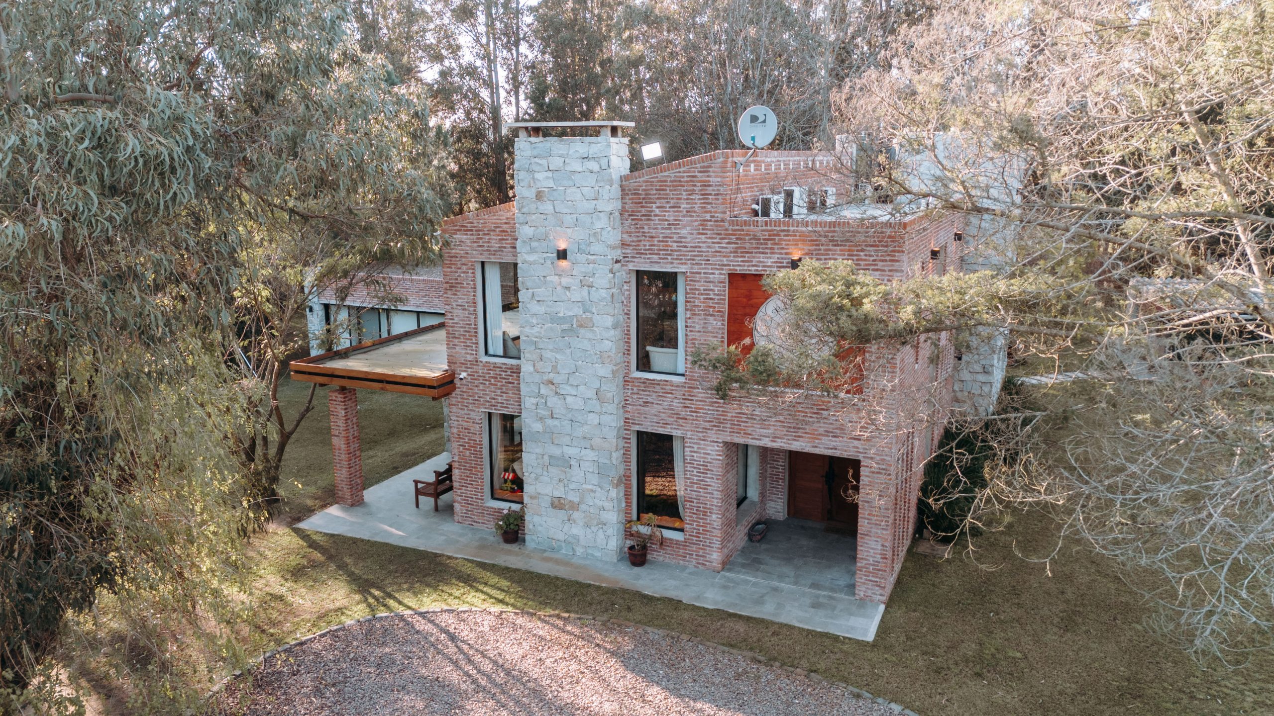 La elección del ladrillo visto en las terminaciones exteriores e interiores aporta un carácter rústico y acogedor, en armonía con el entorno del lugar.