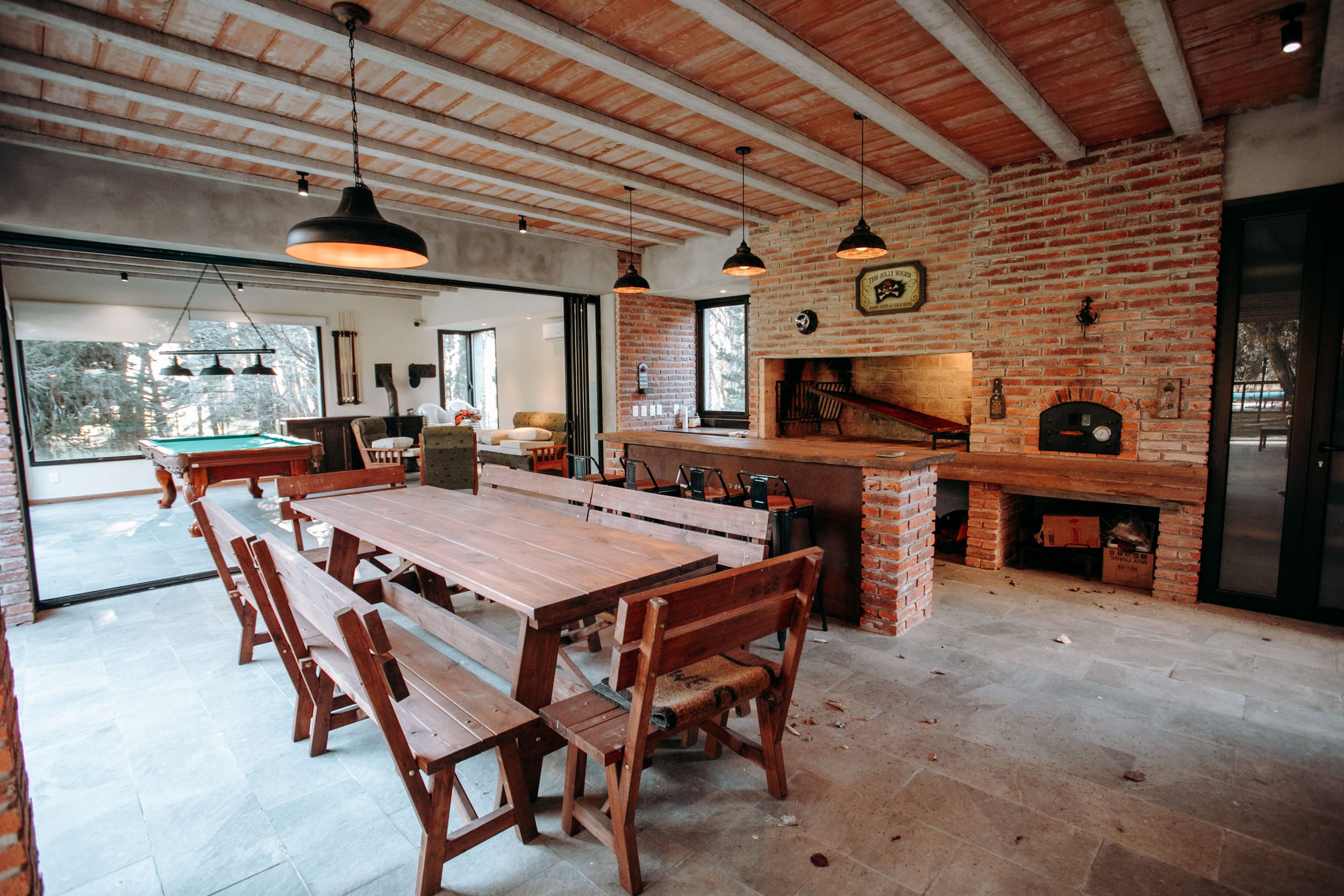 Adyacente a la barbacoa, el playroom ofrece un espacio de entretenimiento adicional, pensado tanto para niños como para adultos.